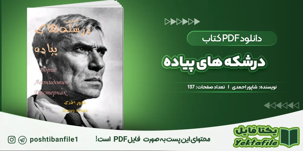 وب سایت یکتا فایل پی دی اف درشکه های پیاده شاپور احمدی را برای شما دوستان آماده کرده است. بوریس لئونیدوین پاسترناند linpoir learntonian Line.repetix فرزند ارشد لئونید پاسترناد Leonido rich Pastamak نقاش و رزا خافمن Roza Kaufman پیانونواز، در ۱۸۱۰ در مسخو چشم به جهان گشود. پدرش در آموزش خاهی که براستی خانه ی خودخی پاسترناف بود هنر یاد میداد. والدینش همواره با نویسندگان و هنرمندان و روشنفکران دیدارهایی داشتند. با سایت یکتا فایل همراه باشید.